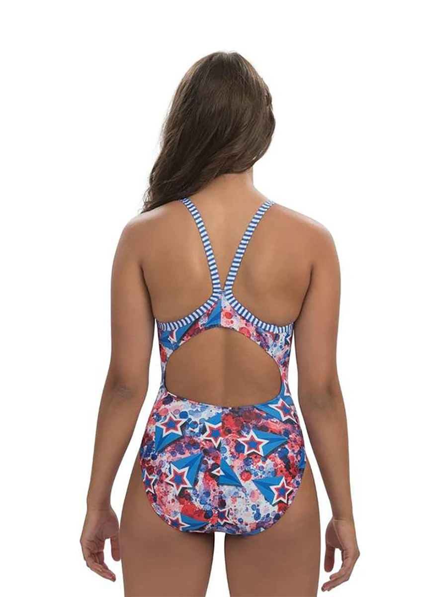 You’ll be the star of the pool in this one-of-a-kind patriotic print.
