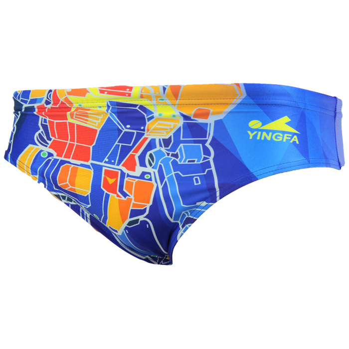 These Yingfa men’s swimming briefs feature a colourful robot inspired print, they are ideal for club and fitness swimmers looking for a pair of swim briefs for regular pool use.
