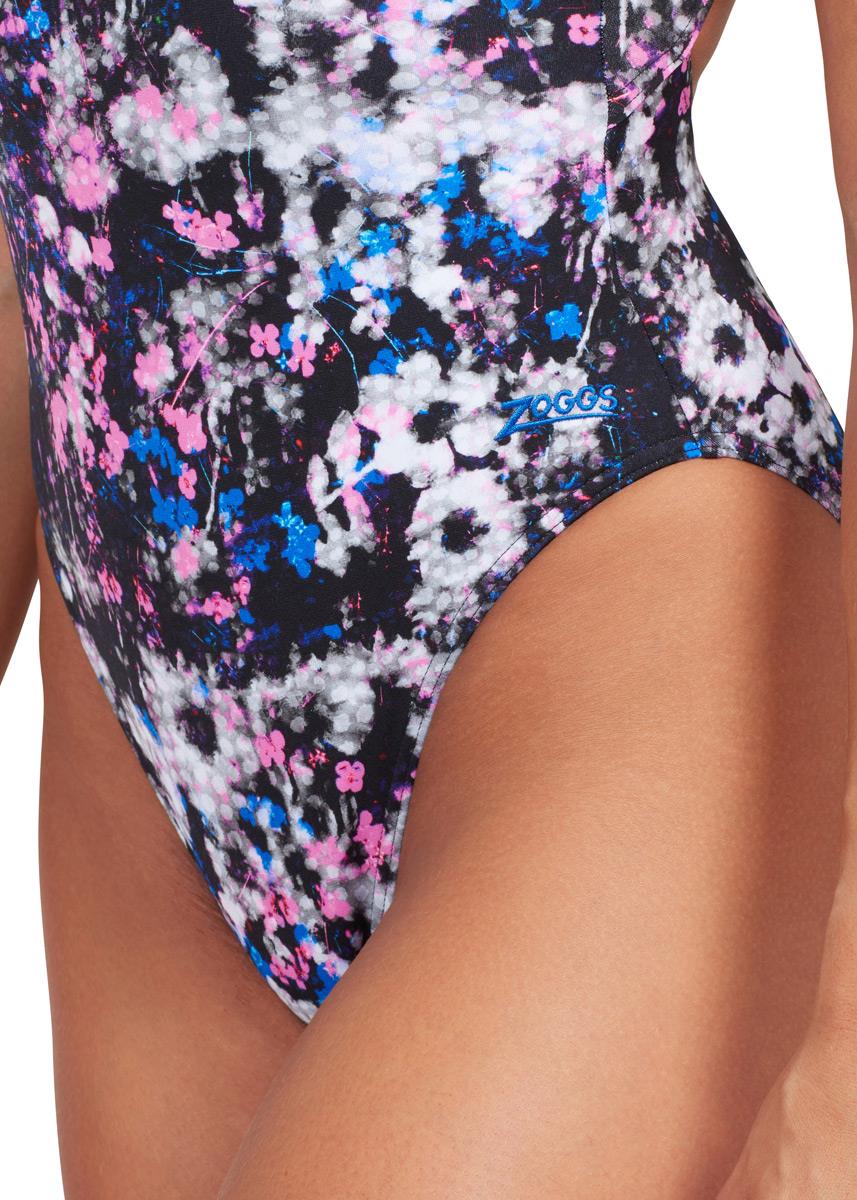 Dive into the next training session in style with the eye-catching print Zoggs Flowerbox Sprintback swimsuit.