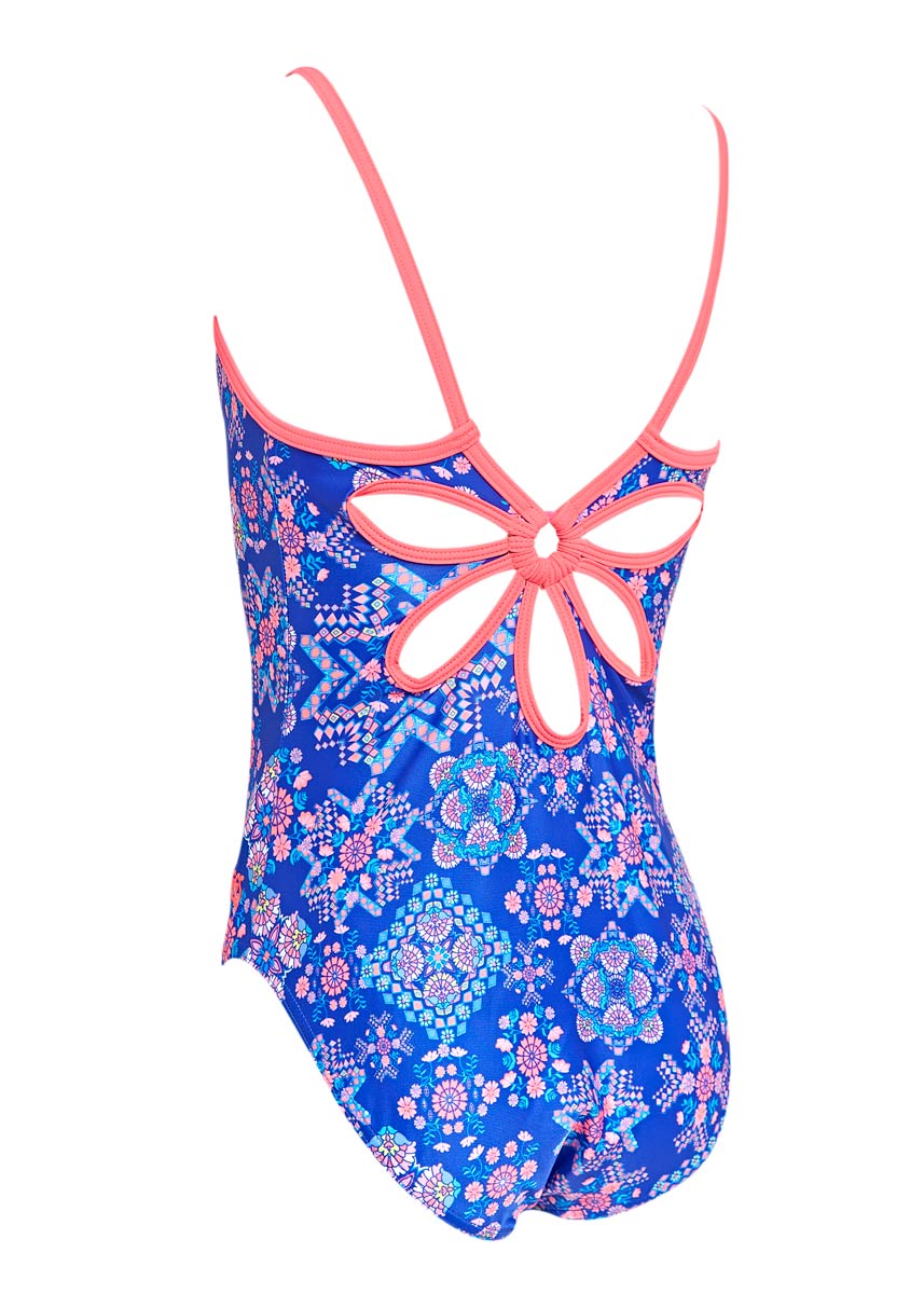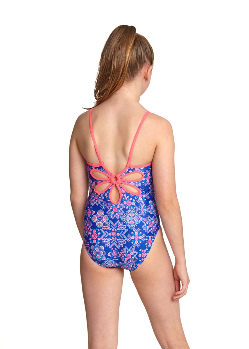The Enchanted Yaroomba swimming costume has a pretty floral back design with thin pink straps.