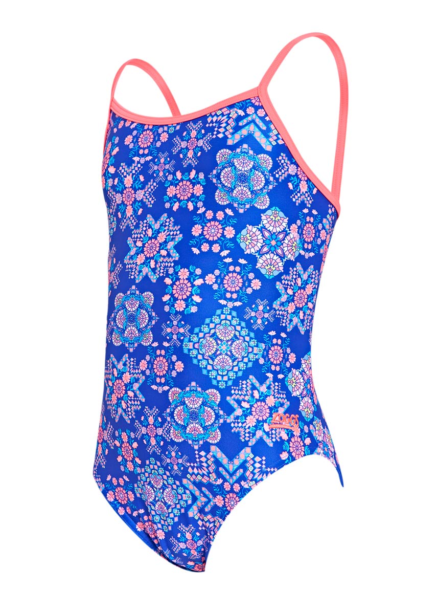 The colourful girl’s Zoggs Enchanted Yaoomba swimsuit is a great choice for young swimmers to take to the pool.