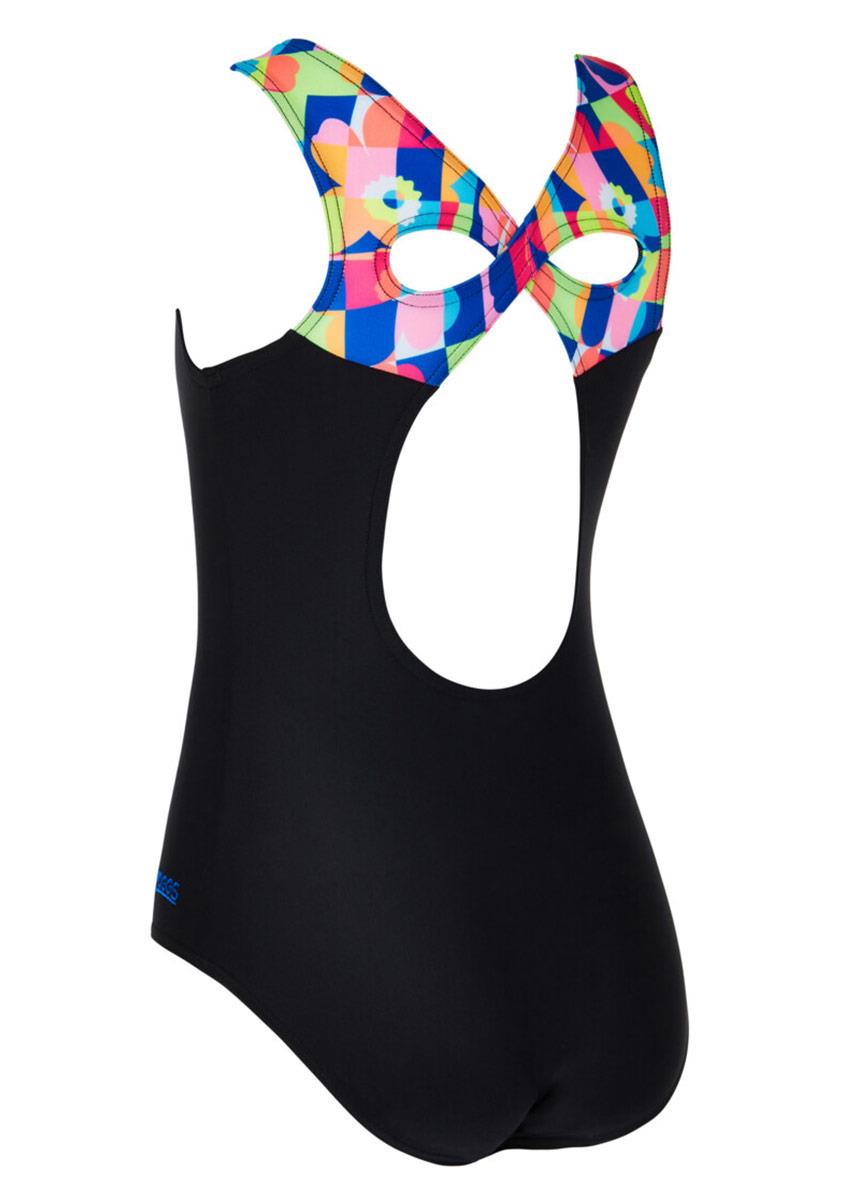 What’s not to love about the Junior Girls Zoggs Flowerpatch Infinity Back swimsuit.