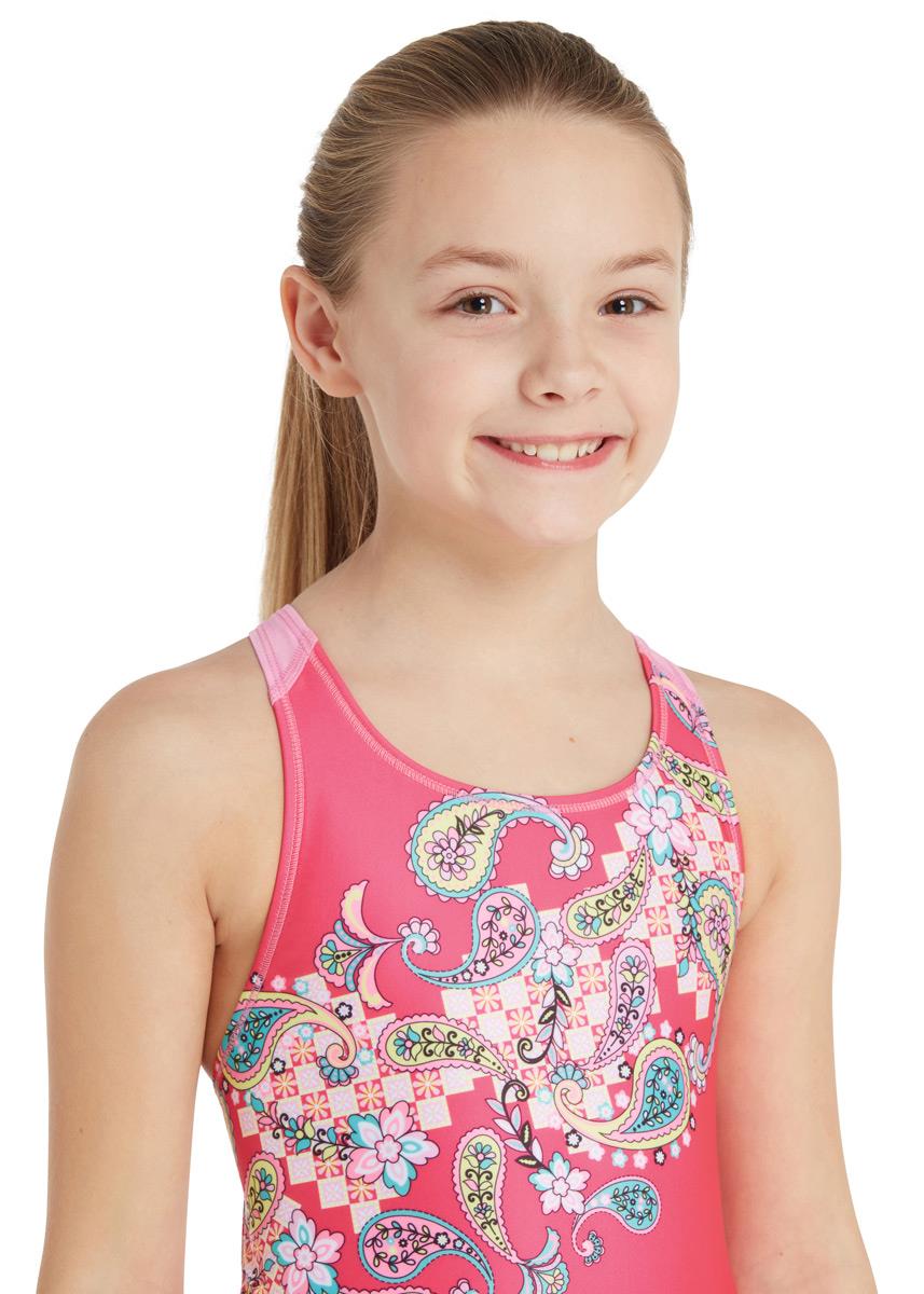 The girl’s Zoggs Heavenly Flyback swimsuit in pink is a great choice for young swimmers to take to the pool.