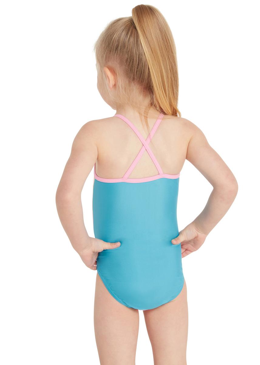 Your little one will be secure in the water with the high back and cross back straps, plus it is easy to get in to and out of the swimsuit.