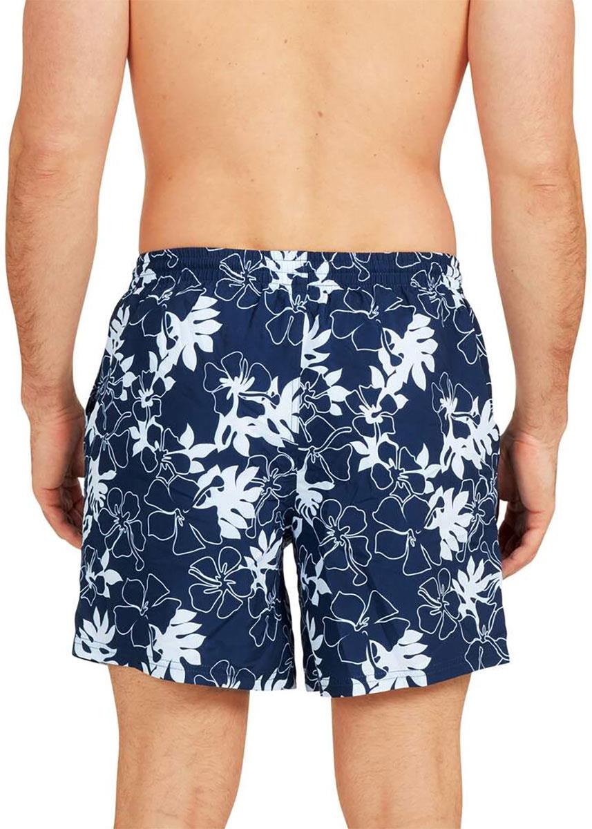 The Zoggs Aloha 16″ Watershorts features a blue and white floral print design.