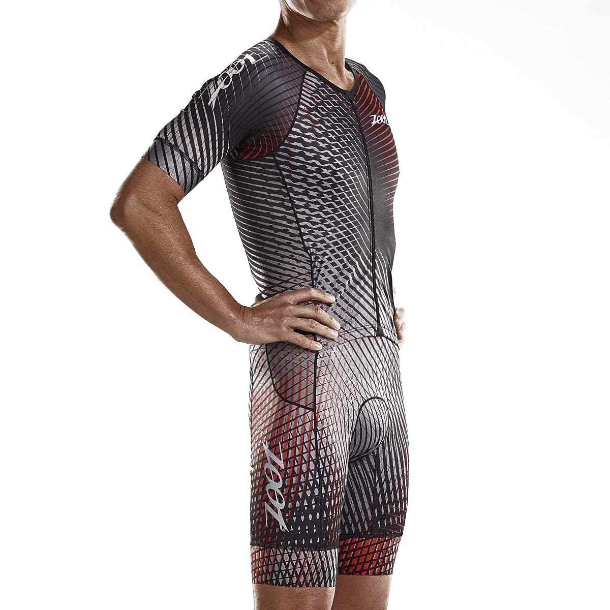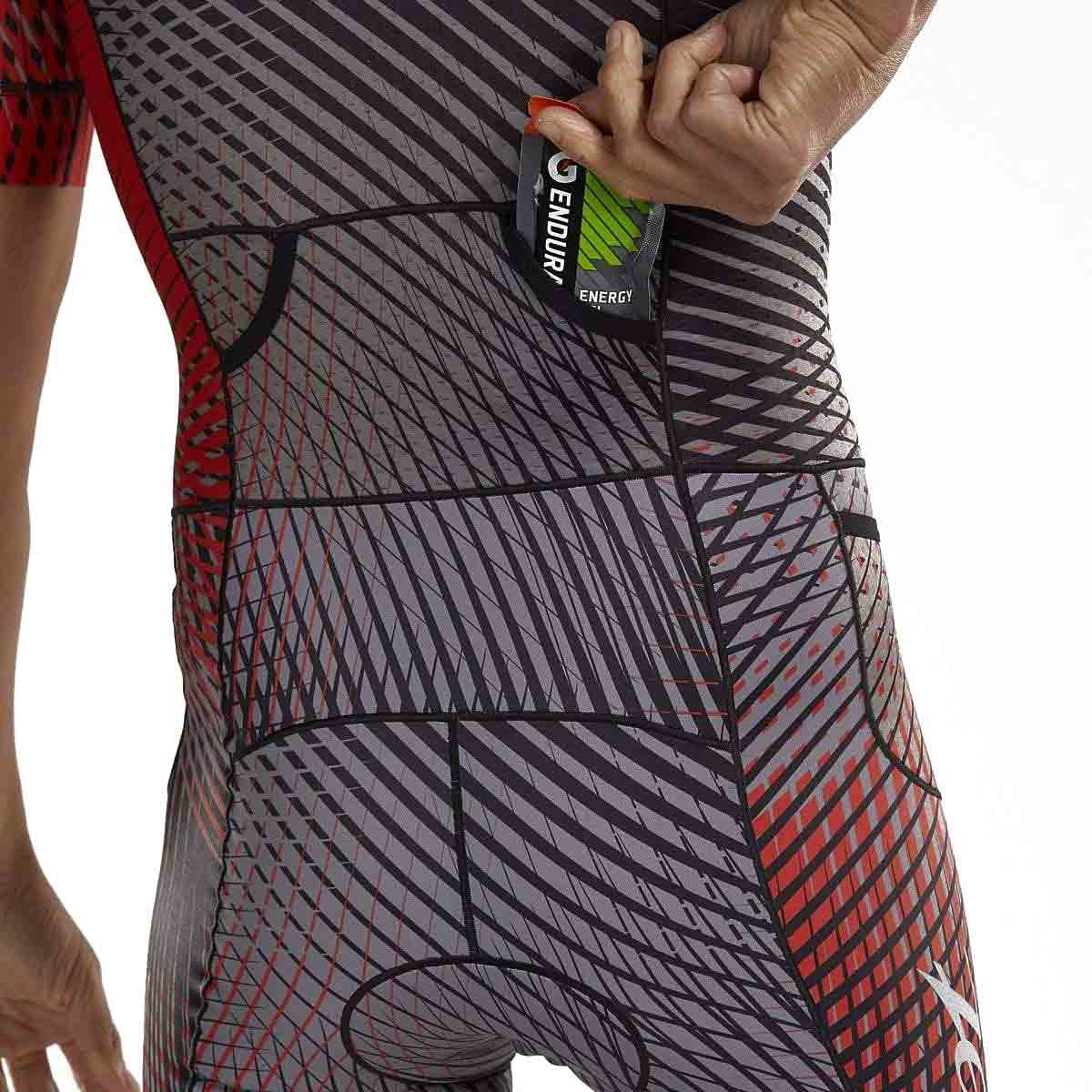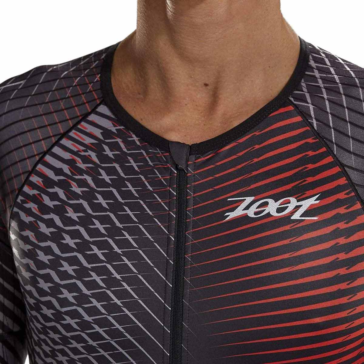 The Zoot Men’s Stoke LTD Tri Aero Racesuit promises to deliver on race day! The ribbed structure of High Speed Light Aero fabric is placed in critical areas of the garment to reduce the vortex of air which is generated behind the athlete and, consequently, reduces drag and saves watts. The full zip design allows for quick and easy pit stops.