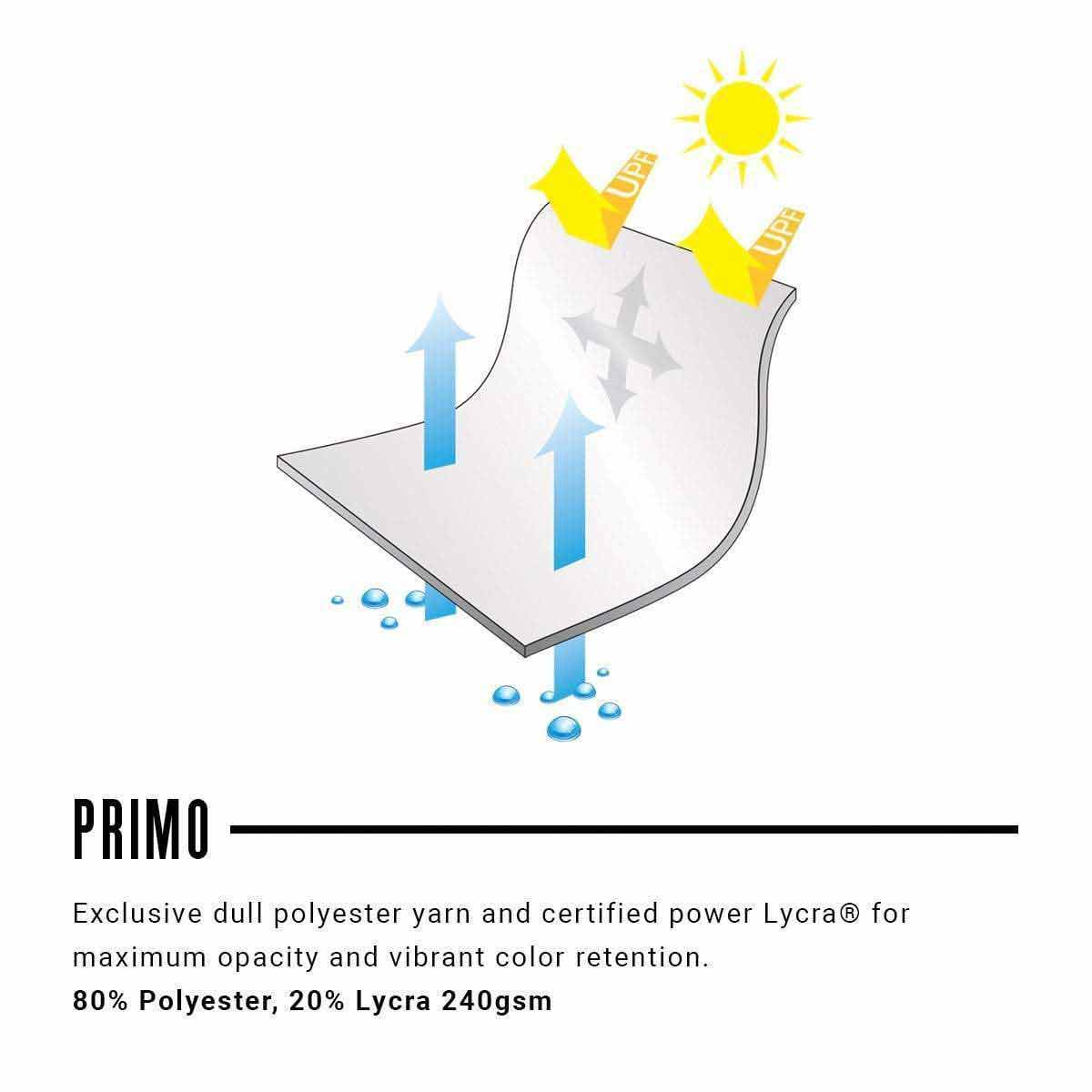 - Sublimated Italian Primo fabric ensures the very best in moisture management, comfort and durability