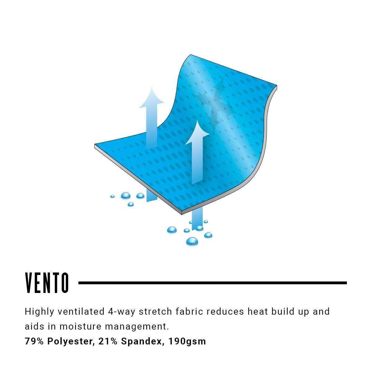- Vento 4-way stretch mesh provides maximum ventilation and moisture management