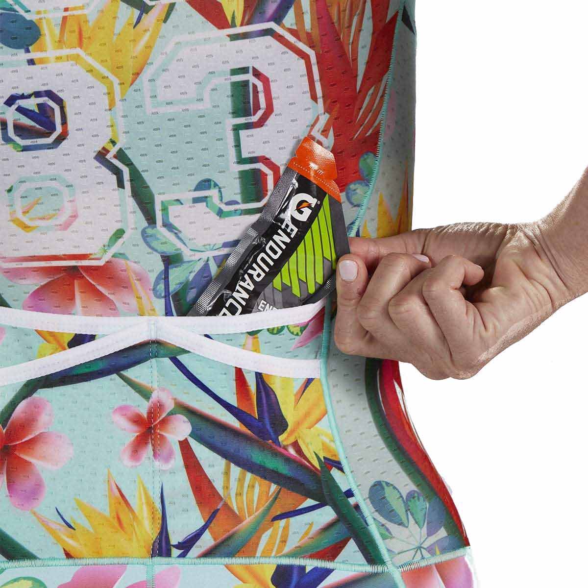 BYOB – bring your own bra for a custom fit. Sublimated Italian fabric helps you stay dry and comfortable while providing enhanced breathability.