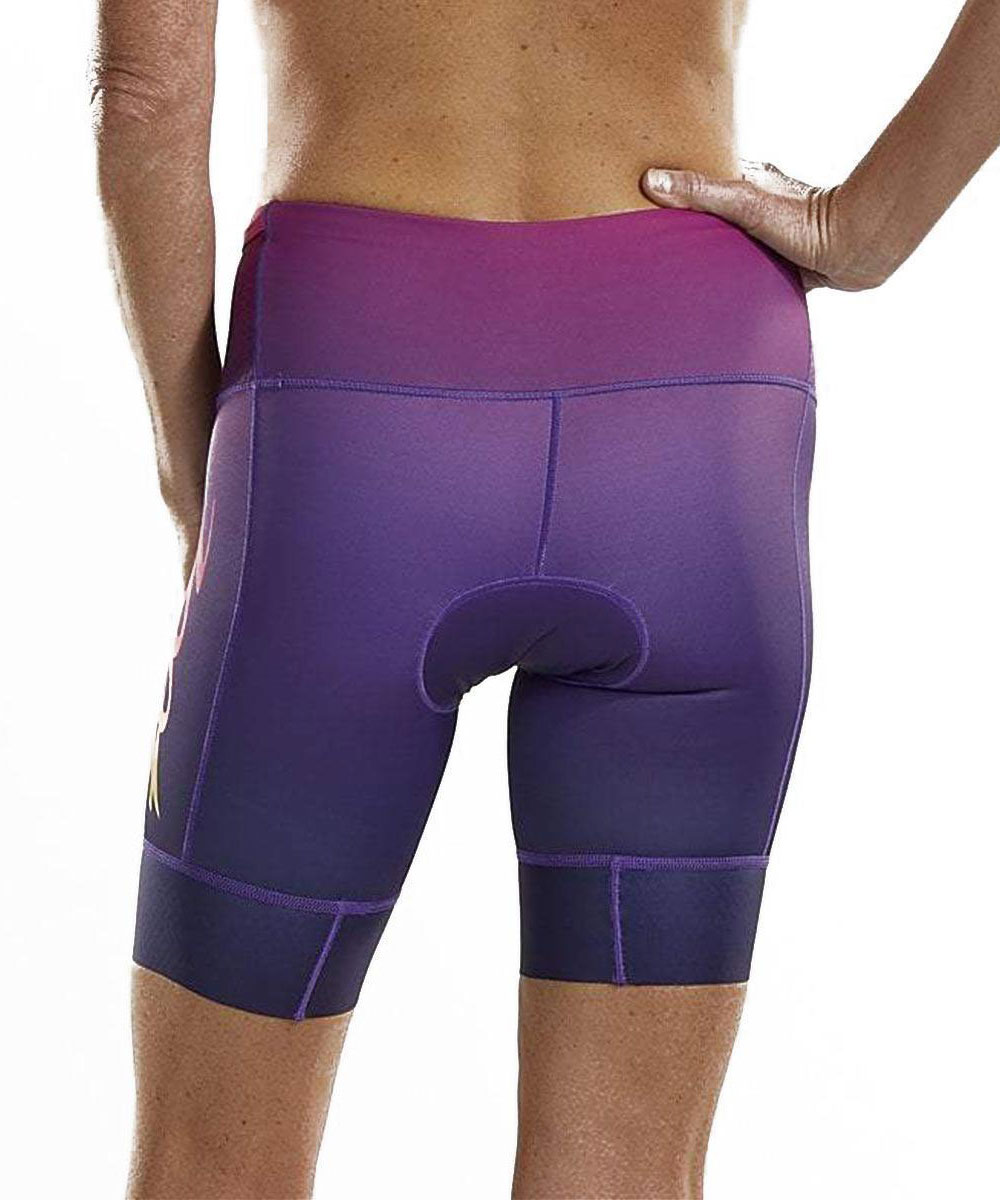 Function and fashion were combined to create the Zoot Women’s Sunset LTD 8″ Tri Short. This short is made for the woman who wants a longer short for more coverage. The upgraded LTD Chamois provides essential cushioning for the ride, yet stays discreet for a no-feel run. Designed with a wide, flattering flat waistband with easy access side-stash pockets for all your nutrition needs.