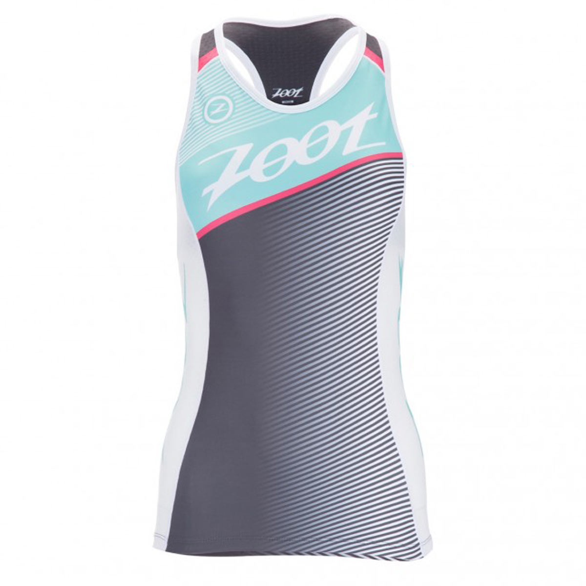 The Zoot Women’s Team Tri Racerback Top with a passionfruit design offers a full range of motion while also creating a comfortable fit.