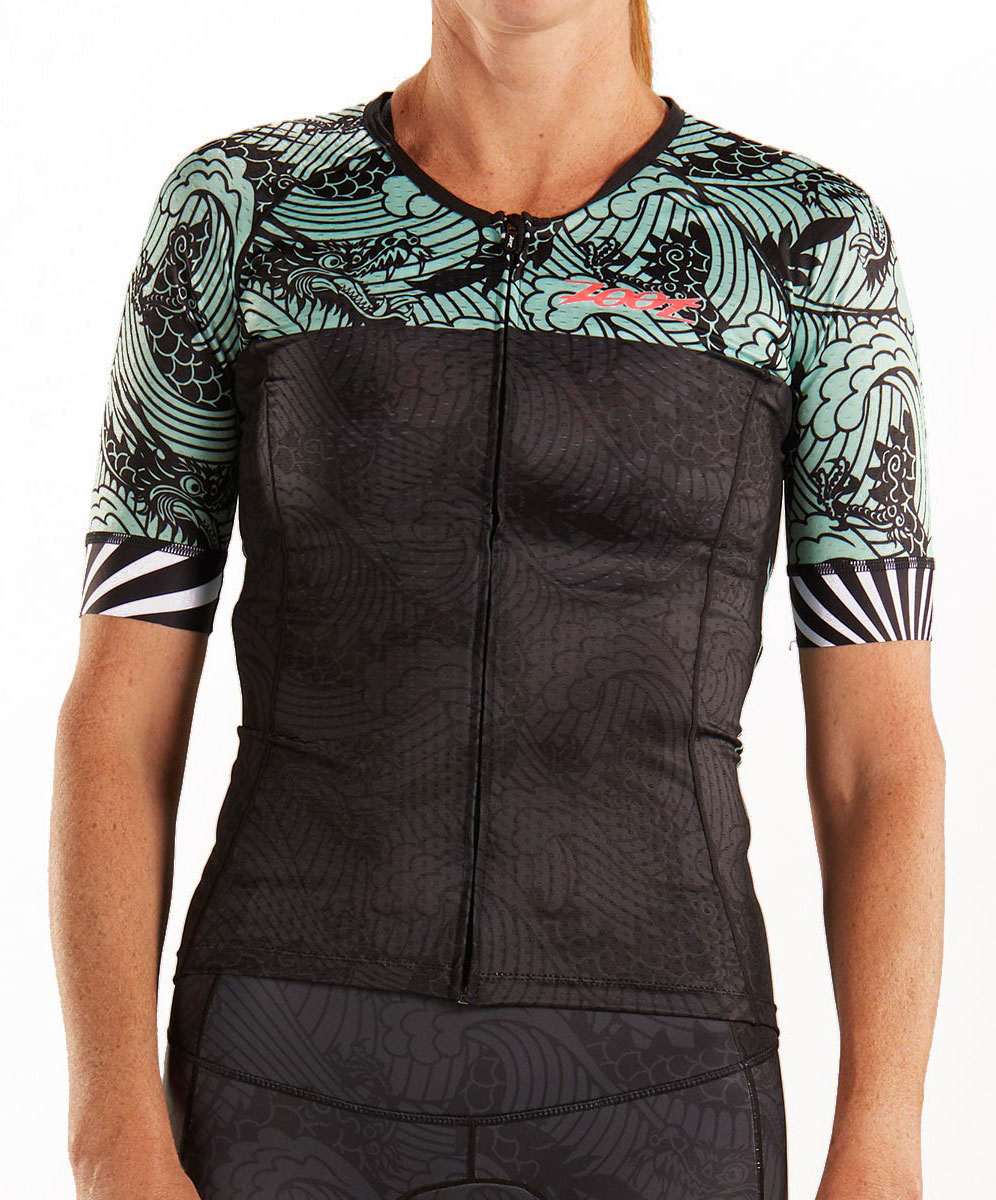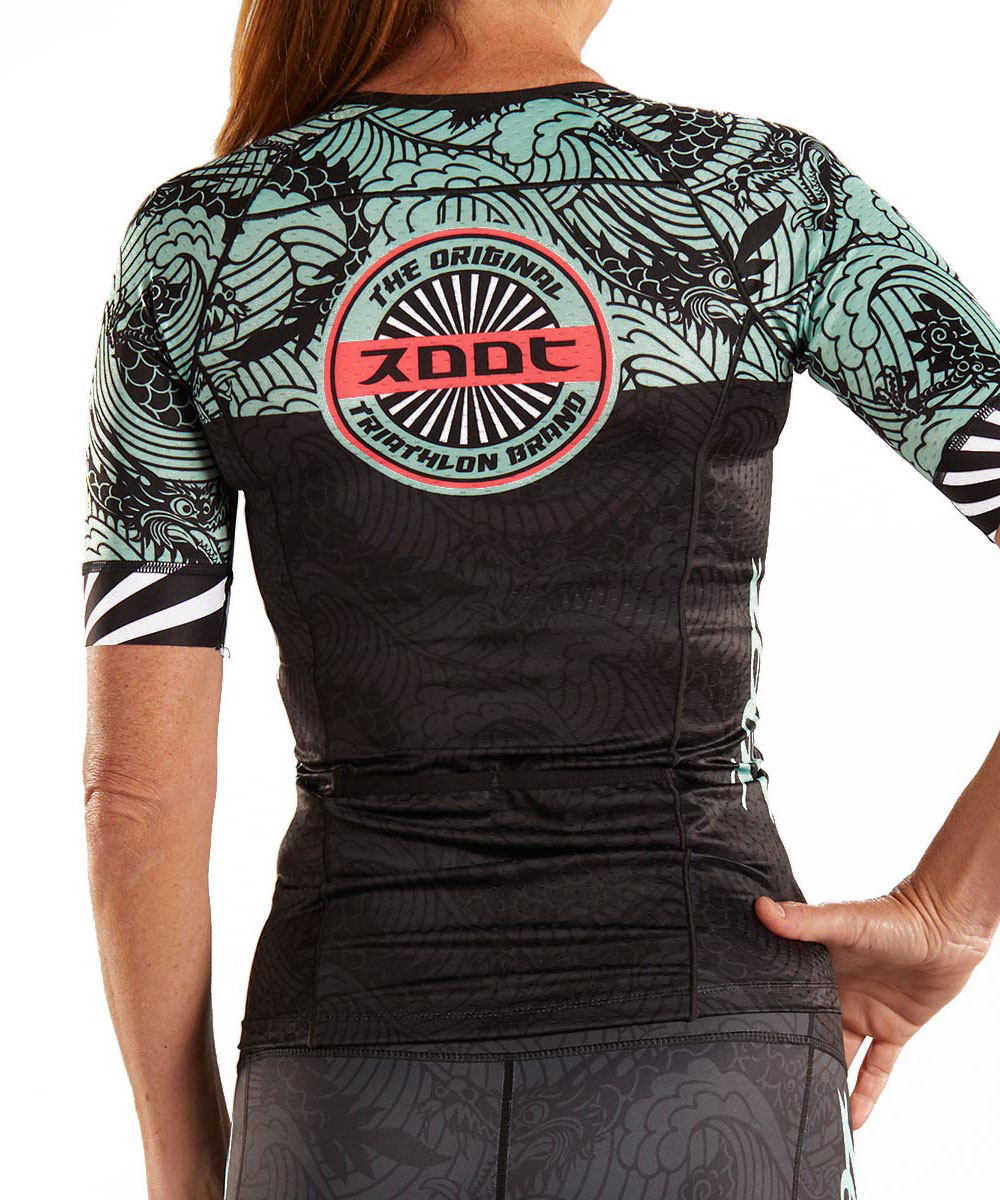 With the new LTD Tri SS Aero Jersey from Zoot with is beautiful “tokyo” pattern, you will want to swim, cycle and run even faster! Enjoy the full freedom of movement in this Aero Jersey. The premium sublimated Italian fabric helps you stay dry while offering improved breathability. Ideal for training and racing, this top gives you the support and style you’re looking for.